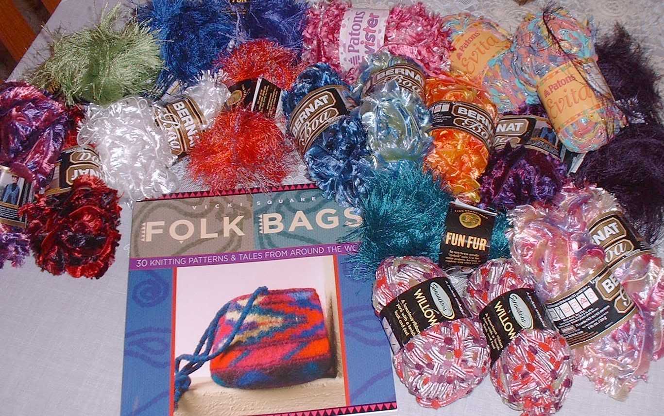 The book ("Folk Bags" by Vicki Square insisted on coming home with me) was a splurge after checking out a new yarn shop in Jacksonville. At least half the bags in it are a must for me to knit, including the one on the cover.